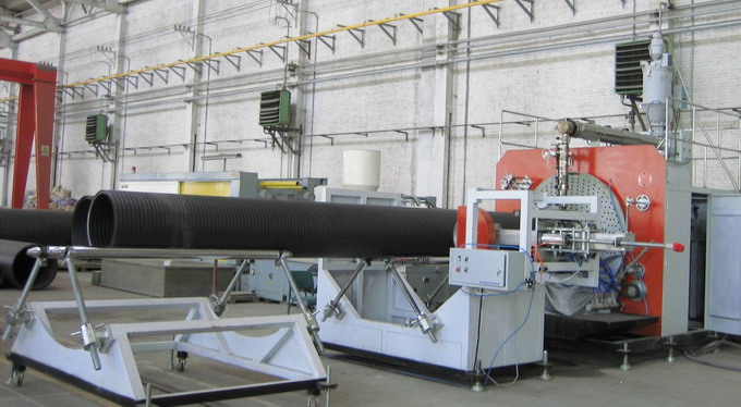 HDPE大口徑中空壁纏繞設備我司依據多年的設計生產經驗,結合歐洲先進管業設備制造工藝,可生產管材口徑200-3000mm的大型管材。生產機組以HDPE為主要原料,經第一臺擠出機擠出管材,后經定型冷卻機定型,進入纏繞成型機,進入纏繞成型機,同時第二臺擠出機擠出溶膠條以螺旋線形式粘合制成成品。按照不同使用條件此生產線可以生產出4個剛度等級的纏繞管制品。制品具有無毒,無味,防腐蝕,抗老化,耐候性好等特點,可在地下和地表使用,廣泛應用于農用,工業的輸水工程。